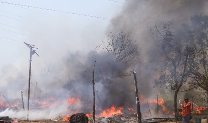 उन्होंने बताया कि आग पर काबू पा लिया गया है और इस घटना में कोई हताहत नहीं हुआ है। पुलिस ने बताया कि भीषण गर्मी के कारण प्रदर्शनी में रखे कुछ अग्निशामक सिलेंडर फट गए।