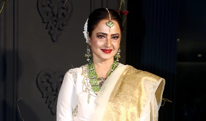 एक वीडियो में, रेखा को वेन्यू पर आते हुए देखा जा सकता है और कैमरों के लिए पोज़ देने से पहले, उन्होंने अगस्त्य नंदा के पोस्टर को फ्रेम पर किस करके ग्रीट किया। उन्होंने हल्के हरे और सुनहरे रंग की साड़ी पहनी थी, मेकअप हल्का रखा था, और अपने लुक को पूरा करने के लिए शेड्स लगाए थे। जो लोग नहीं जानते, उन्हें बता दें कि अगस्त्य नंदा इस फिल्म में अरुण खेत्रपाल का लीड रोल निभा रहे हैं।