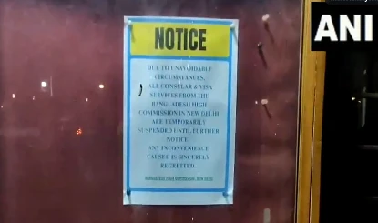 बांग्लादेश ने नई दिल्ली स्थित अपने उच्चायोग में सभी कांसुलर और वीजा सेवाएं निलंबित कर दीं। यह कदम बांग्लादेश के विदेश मामलों के सलाहकार द्वारा ढाका में अपनी उपस्थिति कम करने पर विचार करने के एक दिन बाद उठाया गया, जिसका कारण बांग्लादेश में एक हिंदू व्यक्ति की पीट-पीटकर हत्या के विरोध में उच्चायोग के बाहर हुए प्रदर्शन को बताया गया था। उच्चायोग के बाहर चिपकाए गए एक नोटिस में कहा गया है, अपरिहार्य परिस्थितियों के कारण, नई दिल्ली स्थित बांग्लादेश उच्चायोग में सभी कांसुलर और वीजा सेवाएं अगली सूचना तक अस्थायी रूप से निलंबित कर दी गई हैं। हुई असुविधा के लिए हमें गहरा खेद है।