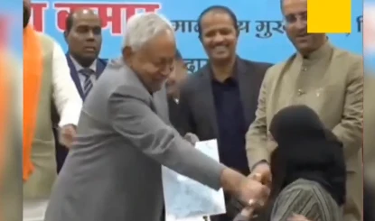 बिहार के मुख्यमंत्री के रूप में दसवीं बार शपथ लेने के एक महीने बाद ही नीतीश कुमार के मानसिक स्वास्थ्य को लेकर सवाल उठने लगे हैं। पटना में एक सरकारी कार्यक्रम के दौरान उन्होंने एक महिला के चेहरे से हिजाब खींच दिया। एक वीडियो, जो अब व्यापक रूप से साझा किया जा रहा है, में 74 वर्षीय जेडीयू प्रमुख सोमवार को कार्यक्रम के दौरान एक आयुष (आयुर्वेद, योग और प्राकृतिक चिकित्सा, यूनानी, सिद्धा और होम्योपैथी) डॉक्टर को प्रमाण पत्र देते हुए और उन्हें हिजाब हटाने का इशारा करते हुए दिखाई दे रहे हैं। महिला के कुछ प्रतिक्रिया देने से पहले ही, कुमार ने हाथ बढ़ाकर हिजाब खींच दिया, जिससे उनका मुंह दिख गई।