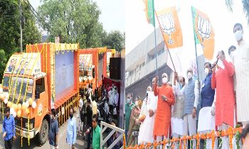 भोपाल। प्रदेश भाजपा कार्यालय से मंगलवार को उपचुनाव वाले 28 विधानसभा क्षेत्रों के लिए वीडियो प्रचार रथ रवाना किए गए। इन रथों को मुख्यमंत्री शिवराज सिंह चौहान, पार्टी के प्रदेश अध्यक्ष व सांसद विष्णुदत्त शर्मा, वरिष्ठ मंत्री गोपाल भार्गव, मंत्री भूपेंद्र सिंह, ओम सखलेचा सहित अन्य वरिष्ठ नेताओं ने कन्यापूजन कर, वैदिक मंत्रोच्चार के बीच हरी झंडी दिखाई। इस अवसर पर मुख्यमंत्री शिवराज सिंह चौहान ने कहा कि कोरोना काल में जनता तक अपनी बात पहुंचाने के लिए उपचुनाव प्रबंधन समिति के अध्यक्ष भूपेंद्र सिंह एवं उनकी टीम ने वीडियो प्रचार रथ का माध्यम चुना है। इससे कोरोना गाइडलाइन का पालन करते हुए जनता तक भाजपा सरकार के काम पहुंच सकेंगे। मुख्यमंत्री श्री शिवराज सिंह चौहान ने कहा कि हमने कोरोनाकाल में जनता की सुरक्षा का पूरा ध्यान रखा है औैर अब भी कोरोना वायरस सक्रिय है, इसलिए जनता तक सरकार की बात पहुंचाने के लिए वीडियो प्रचार रथ का माध्यम चुना है। ये रथ 28 विधानसभा क्षेत्रों में गांव-गांव तक पहुंचेंगे और जनता तक सरकार की योजनाओें को पहुंचाएंगे। ये वीडियो रथ बीते 6 महीनों में भाजपा सरकार द्वारा किए गए काम को जनता के बीच रखेंगे।