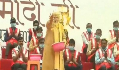 काशी-विश्वनाथधाम पहुंचे पीएम मोदी ने गर्भगृह में विधिवत पूजा-अर्चना की। इसके बाद और लोकार्पण से पहले वह सीधे मजदूरों के बीच पहुंचे। उन्होंने मजदूरों पर फूल बरसाए। इसके बाद उनके साथ बैठकर ग्रुप फोटो भी खिंचवाई। काशी विश्वनाथ कॉरिडोर के उद्घाटन के बाद पीएम मोदी ने दोपहर का भोजन उन्हीं मजदूरों के साथ किया।