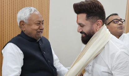 केंद्रीय मंत्री और लोक जनशक्ति पार्टी (रामविलास) के प्रमुख चिराग पासवान ने शनिवार को अपनी पार्टी के प्रतिनिधिमंडल के साथ बिहार के मुख्यमंत्री नीतीश कुमार से पटना स्थित उनके आवास पर मुलाकात की। पासवान ने बिहार विधानसभा चुनावों में राष्ट्रीय जनतांत्रिक गठबंधन (राजग) की शानदार सफलता पर मुख्यमंत्री नीतीश कुमार को शुभकामनाएं दीं। मुख्यमंत्री नीतीश कुमार से मुलाकात के बाद चिराग पासवान ने संवाददाताओं से कहा कि मैंने मुख्यमंत्री से मुलाकात की, उन्हें बधाई और शुभकामनाएं दीं। नीतीश कुमार के नेतृत्व में एनडीए ने ऐतिहासिक जीत दर्ज की है। इसलिए, लोजपा (रालोद) के एक प्रतिनिधिमंडल ने उनसे मुलाकात की और उन्हें बधाई दी।