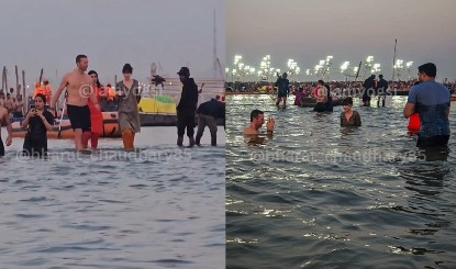 सोशल मीडिया पर वायरल हो रहे वीडियो में, क्रिस काले शॉर्ट्स पहकर गंगा में डुबकी लगाते दिख रहे हैं, जबकि डकोटा कुर्ता और ट्राउजर में पवित्र नदी में खड़ी नजर आ रही है। क्रिस को बंद आंखों और हाथ जोड़कर प्रार्थना करते हुए भी देखा गया।