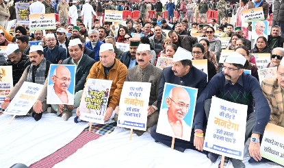 हिमाचल प्रदेश के मुख्यमंत्री सुखविंदर सिंह सुक्खु ने सोमवार को अपने मंत्रिमंडल के सदस्यों के साथ शिमला के रिज स्थित महात्मा गांधी प्रतिमा के पास केंद्र सरकार के एमजीएनआरईजीए योजना को बंद करने के फैसले के विरोध में प्रदर्शन किया। एक आधिकारिक विज्ञप्ति के अनुसार, उपस्थित लोगों को संबोधित करते हुए मुख्यमंत्री ने इस कदम को घोर ग्रामीण विरोधी और लाखों ग्रामीण परिवारों की आजीविका सुरक्षा के लिए हानिकारक बताया।