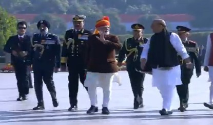 प्रधान मंत्री नरेंद्र मोदी 76वें गणतंत्र दिवस पर खास लुक में नजर आए। 26 जनवरी को उन्होंने सफेद रंग का कुर्ता रायजामा पहना था। इसके ऊपर भूरे रंग की 'बंदगला' जैकेट और लाल, नारंगी और पीले रंग की धारीदार 'साफा' (पगड़ी) पहन रखी थी। । इससे पहले प्रधानमंत्री मोदी ने 75वें गणतंत्र दिवस के अवसर पर बहुरंगी ‘बांधनी’ प्रिंट का साफा पहना था। बंधनी एक प्रकार का टाई-डाई कपड़ा है जो गुजरात और राजस्थान में लोकप्रिय है। कपड़े को नाखूनों से कई छोटे-छोटे बंधनों में फंसाकर सजाया जाता है, जिससे एक आलंकारिक डिजाइन बनता है।