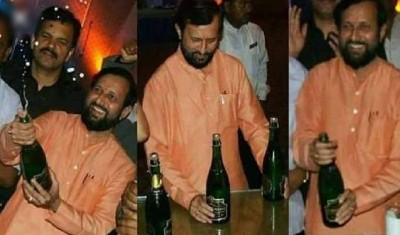 कांग्रेस नेता मणिकम टैगोर ने प्रकाश जावड़ेकर की शैम्पेन वाली तस्वीर को सोशल मीडिया प्लेटफॉर्म ट्विटर पर शेयर किया। जिसमें प्रकाश जावड़ेकर शैम्पेन की बोतल को खोलते हुए दिखाई दे रहा है। इसके साथ ही कांग्रेस नेता ने पूछा कि यह कौन है ? इसे भाजपा पर कांग्रेस का पलटवार माना जा रहा है।
