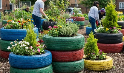 टायर को जमीन पर रखकर बनाएं प्लांटर