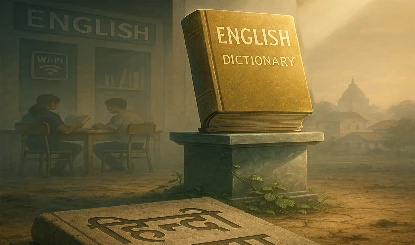 अब हिन्दी प्रेम केवल सरकारी फाइलों और दीवारों पर लिखा नारा बन गया है—“हिन्दी हमारी शान है”—जिसके ठीक नीचे लिखा होता है—“Speak only in English.” अब बच्चों को सिखाया जाता है—“A for Apple, B for Ball, C for Culture…जो हिन्दी में नहीं पढ़ते।” हिन्दी के लिए अब भी कुछ कवि आँसू बहाते हैं, हिन्दी के लिए साहित्य अकादमी में सम्मान बाँटा जाता है, लेकिन हिन्दी खुद को शीशे में देखकर पूछती है—“क्या मैं रानी हूँ या अब भी चेरी?”
