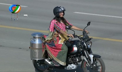 दो महिलाओं को पारंपरिक ‘बिलोना’ विधि से घी निकालते दिखाया गया और साथ ही घी की एक बोतल दिखाई गई। झांकी के पिछले हिस्से में कामधेनु/सुरभि की एक मूर्ति प्रदर्शित की गई। कामधेनु को एक पवित्र गाय माना जाता है जो इच्छाओं को पूरा कर सकती है और समृद्धि का भी प्रतिनिधित्व करती है। साइकिल और बायो-सीएनजी मोटरसाइकिल पर झांकी के साथ आने वाले सवारों ने भारत के हर कोने से दूध को सहकारी संग्रह केंद्रों या उपभोक्ताओं तक पहुंचाने वाले पुरुषों और महिलाओं के परिश्रम को दर्शाया।