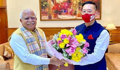 सिंगापुर के उच्चायुक्त साइमन वॉग ने हरियाणा में सौर ऊर्जा जैसे आगामी क्षेत्रों में विभिन्न परियोजनाओं और सहयोग पर चर्चा की। श्री वॉग राज्य में चल रहे कौशल प्रशिक्षण संस्थानों से भी प्रभावित हुए। बैठक के दौरान मुख्यमंत्री ने श्री वॉग को हरियाणा में शोध के उद्देश्य से अंतर-अनुशासनात्मक केंद्र की स्थापना करने जैसे विभिन्न सुझाव भी दिए।