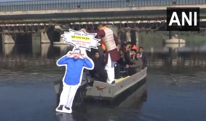 अपने दिल्ली विधानसभा चुनाव अभियान के केंद्र में यमुना नदी को रखते हुए, भारतीय जनता पार्टी ने पूर्व मुख्यमंत्री अरविंद केजरीवाल पर एक नया हमला किया। शनिवार तड़के, भाजपा के नई दिल्ली विधानसभा क्षेत्र के उम्मीदवार परवेश वर्मा ने केजरीवाल का आदमकद कट-आउट लेकर यमुना नदी में नाव की सवारी की। उनके साथ उनकी पार्टी के सहयोगी भी थे। कट-आउट में केजरीवाल को शर्म से अपना कान पकड़ते हुए नारे के साथ देखा जा सकता है, "मैं फेल हो गया, मुझे वोट मत देना, 2025 तक मैं यमुना साफ नहीं कर पाया।"