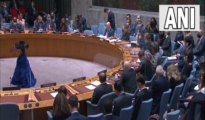 प्रस्ताव में यूक्रेन के अंतरराष्ट्रीय स्तर पर मान्यता प्राप्त सीमाओं के भीतर से और यूक्रेन के पूरे क्षेत्र से रूसी सैनिकों और रूसी समर्थित सशस्त्र समूहों की ‘‘तेजी से और सत्यापन योग्य’’ वापसी का भी आह्वान किया गया। भारत ने पिछले एक सप्ताह के दौरान 15 देशों की सुरक्षा परिषद में यूक्रेन पर दो प्रस्तावों और 193 सदस्यीय महासभा में एक प्रस्ताव पर मतदान में हिस्सा नहीं लिया है।