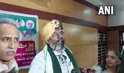 किसान नेता राकेश टिकैत कर्नाटक के बेंगलुरु में थे। बेंगलुरु में वह एक के संवाददाता सम्मेलन को संबोधित कर रहे थे। इसी दौरान वहां बवाल बढ़ गया। स्थानीय किसान नेता ने राकेश टिकैत के मुंह पर काली स्याही फेंक दी। इतना ही नहीं, इस प्रेस कांफ्रेंस का एक वीडियो भी सामने आया है। खुद पर हुए स्याही हमले के बाद भारतीय किसान नेता राकेश टिकैत ने कहा कि ये जिम्मेदारी यहां के पुलिस की है। यहां पुलिस ने सुरक्षा का इंतजाम नहीं किया है। पूर्ण रूप से सरकार की मिलीभगत से ये काम हुआ है।