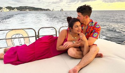 पहली तस्वीर में प्रियंका चोपड़ा को निक जोनास के साथ बैठा हुआ देखा जा सकता है। प्रियंका चोपड़ा को पिंक करल के गाउन में देखा जा सकता है जबकि निक जोनास एक रंगीन शर्ट पहने हुए थे। दूसरी तस्वीर में, प्रियंका को नारंगी रंग के स्विमवियर में धूप सेंकते हुए देखा जा सकता है, जबकि तीसरी तस्वीर में खुद को टोस्ट उठाते हुए देखा जा सकता है। एक तस्वीर में एक्ट्रेस डाइनिंग के वक्त 'हैप्पी न्यू ईयर' का चश्मा पहने हुए भी नजर आ रही हैं।