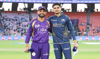 आईपीएल 2026 के 25वें मुकाबले में कोलकाता नाइट राइडर्स और गुजरात टाइटंस की भिड़ंत हो रही है। ये मुकाबला अहमदाबाद के नरेंद्र मोदी स्टेडियम में खेला जा रहा है। वहीं केकेआर के कप्तान अजिंक्ये रहाणे ने टॉस जीतकर पहले बल्लेबाजी करने का फैसला किया।
