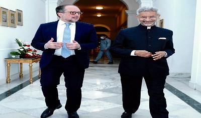 नयी दिल्ली| विदेश मंत्री एस जयशंकर ने रविवार को अपने ऑस्ट्रियाई समकक्ष एलेक्जेंडर शालेनबर्ग के साथ द्विपक्षीय आर्थिक संबंध के साथ-साथ यूक्रेन पर रूसी हमले के प्रभाव सहित विभिन्न मुद्दों पर बातचीत की।
