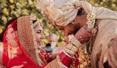 कैटरीना कैफ और विक्की कौशल अपने परिवार के सदस्यों और दोस्तों की मौजूदगी में शादी के बंधन में बंध गए। उनका प्री-वेडिंग उत्सव 7 दिसंबर को राजस्थान के सिक्स सेंस फोर्ट बरवारा रिसॉर्ट में शुरू हुआ। उस दिन इस जोड़े की मेहंदी और हल्दी की रस्म हुई थी। विक्की और कैटरीना का संगीत समारोह 8 दिसंबर को हुआ था। कथित तौर पर, विक्की और कैटरीना ने अपनी शादी की तस्वीरें एक लोकप्रिय ओटीटी प्लेटफॉर्म को 100 करोड़ रुपये में बेची हैं।