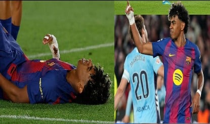 एफसी बार्सिलोना ने सेल्टा विगो को अपने घर में 1-0 से हराकर ला लीगा में रियल मैड्रिड पर 9 अंकों की बढ़त बना ली। इस जीत के लिए बार्सिलोना को काफी मेहनत करनी पड़ी। लेकिन वहीं टीम को लामिन यामल के रूप में बड़ा झटका लगा है। दरअसल, लामिन यामल डिफेंस को भेदते हुए गिर गए और उन्हें चोट लग गई। जिस कारण वह बाहर हो गए।