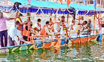 भोपाल। मुख्यमंत्री शिवराज सिंह चौहान शनिवार को ओंकारेश्वर में मध्य प्रदेश भाजपा के पूर्व अध्यक्ष व खंडवा सांसद स्व. नंदकुमार सिंह चौहान के अस्थि विसर्जन कार्यक्रम में शामिल हुए। इस अवसर पर मुख्यमंत्री ने ओंकारेश्वर के नागर घाट पर श्रद्धांजलि सभा में नर्मदा तट पर एक घाट स्व. नंदू भैया के नाम पर निर्मित कराने की घोषणा की।