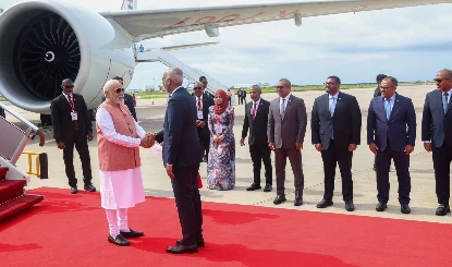 प्रधानमंत्री नरेंद्र मोदी शुक्रवार को मालदीव के माले पहुँचे जहाँ राष्ट्रपति मोहम्मद मुइज़्ज़ू, देश के विदेश मंत्री, रक्षा मंत्री, वित्त मंत्री और गृह सुरक्षा मंत्री ने उनका गर्मजोशी से स्वागत किया। प्रधानमंत्री मोदी अपनी ब्रिटेन की अपनी यात्रा समाप्त करने के बाद अपनी दो दिवसीय यात्रा पर मालदीव पहुँचे। प्रधानमंत्री मोदी का बच्चों द्वारा प्रस्तुत पारंपरिक नृत्य के साथ प्रधानमंत्री का स्वागत किया गया। प्रधानमंत्री नरेंद्र मोदी के दो दिवसीय आधिकारिक दौरे पर मालदीव पहुंचने पर 'वंदे मातरम' और 'भारत माता की जय' के नारे गूंजे।