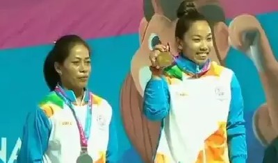 ओडिशा की स्नेहा सोरेन ने कुल 169 किग्रा (स्नैच में 73 किग्रा, क्लीन एवं जर्क में 96 किग्रा) भार उठाकर कांस्य पदक जीता। स्नैच में मीराबाई ने अपने पहले ही प्रयास में 81 किग्रा वजन उठाकर शुरुआती बढ़त हासिल कर ली। उन्होंने दूसरे प्रयास में 84 किग्रा वजन उठाकर मणिपुर की अपनी साथी भारोत्तोलक संजीता पर दो किग्रा की बढ़त बनाई जो अपने पहले दो प्रयास में 80 किग्रा और 82 किग्रा वजन ही उठा सकी। संजीता के 84 किग्रा के तीसरे प्रयास को फाउल करार दिया गया। मीराबाई ने अपनी ऊर्जा बचाना पसंद किया और तीसरे प्रयास के लिए नहीं आईं। क्लीन एवं जर्क में संजीता ने अपने पहले प्रयास में 95 किग्रा भार उठाया और फिर सफलतापूर्वक 100 और 105 किग्रा वजन उठाया।