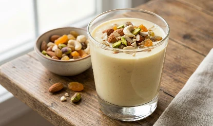 अगर नवरात्रि व्रत के दौरान आप थकान या कमजोरी महसूस करते हैं, तो यह शेक आपके लिए सबसे अच्छा विकल्प है। यह शेक पूरी तरह से पौष्टिक और एनर्जी से भरपूर है, जो आपको तुरंत ताजगी का एहसास कराता है। इसमें लगभग 20 ग्राम प्रोटीन के साथ-साथ कैल्शियम, आयरन और फाइबर भी भरपूर मात्रा में मिलता है। यह आपको लंबे समय तक भूख नहीं लगने देता, जिससे आपका पेट भरा-भरा महसूस होता है।