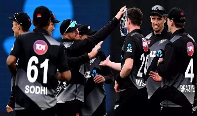 अब उसके और पाकिस्तान के बीच गुरुवार को होने वाला मैच औपचारिक रह गया है। न्यूजीलैंड ने पहले बल्लेबाजी के लिए आमंत्रित किए जाने पर पांच विकेट पर 208 रन का मजबूत स्कोर खड़ा किया। इसमें कॉनवे (40 गेंदो पर 64 रन, पांच चौके, तीन छक्के) और फिलिप्स (24 गेंदो पर 60 रन, दो चौके, पांच छक्के) का योगदान महत्वपूर्ण रहा। इन दोनों के अलावा फिन एलेन ने 32 और मार्टिन गुप्टिल ने 34 रन का योगदान दिया। फिलिप्स ने केवल 19 गेंदों पर अपना अर्धशतक पूरा किया।