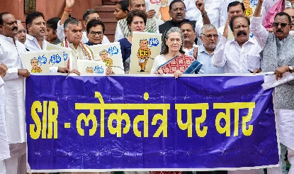 विपक्षी सांसद 2 दिसंबर (मंगलवार) को सुबह 10:30 बजे संसद भवन के मकर द्वार के सामने चुनावी सुधारों पर चर्चा की मांग को लेकर विरोध प्रदर्शन करेंगे। लोकसभा के शीतकालीन सत्र के पहले दिन विपक्षी दलों ने चुनावी धोखाधड़ी का आरोप लगाते हुए बार-बार नारेबाजी की। कई विपक्षी नेताओं ने सदन में "वोट चोर, गद्दी छोड़" के नारे लगाए और साथ ही देश भर में मतदाता सूची के चल रहे विशेष गहन पुनरीक्षण (एसआईआर) पर चर्चा की मांग की।