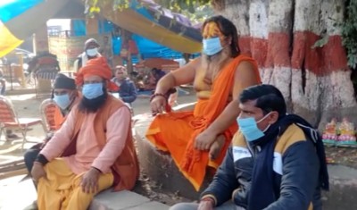 तपस्वी छावनी के संत परमहंस दास ने कोरोना के तीसरे लहर ओमिक्रोम संकट के बढ़ते प्रकोप को देखते हुए आज अयोध्या के सिविल लाइन क्षेत्र स्थित वटवृक्ष के नीचे बैठ कर महामारी को रोकने के लिए विशेष मंत्रोचार से साधना की। और विशेष रूप से सभी आम जनमानस से सहज और सुरक्षित रहने की अपील भी किया। कहा कि सभी को दो गज दूरी और मास्क की उपयोगिता के बारे में लोगो को जागरूक किया। तो वहीँ बिना मास्क के घूम रहे लोगो को मॉस्क भी वितरित किया।
