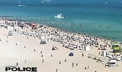 अमेरिका में मियामी बीच के समुद्र के पानी में अचानक एक हेलीकॉप्टर दुर्घटनाग्रस्त हो गया है। यह हादसा तैराकों से कुछ फीट की दूरी पर भीड़-भाड़ वाले इलाके में हुआ। हादसे से वहां मौजूद तैराक और धूप सेंकने वालों अंदर तक सहम गये। दोपहर 1:20 बजे स्थानीय समयानुसार, फेडरल एविएशन एडमिनिस्ट्रेशन के अनुसार, रॉबिन्सन R44 हेलीकॉप्टर एक लोकप्रिय समुद्र तट के पास समुद्र में दुर्घटनाग्रस्त हो गया। दुर्घटना में घायल दो यात्रियों को नजदीकी अस्पताल ले जाया गया और उनकी हालत स्थिर है।