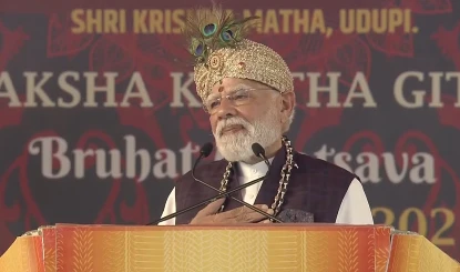 प्रधानमंत्री नरेंद्र मोदी ने शुक्रवार को कर्नाटक के उडुपी स्थित श्री कृष्ण मठ में लक्ष कंठ गीता पारायण कार्यक्रम में उपस्थित लोगों को संबोधित करते हुए नए भारत की शक्ति और संकल्प का आह्वान किया। राष्ट्रीय सुरक्षा की बात करते हुए, प्रधानमंत्री ने कहा कि हमारा सुदर्शन चक्र दुश्मनों को तबाह कर देगा। हमने ऑपरेशन सिंदूर में यह देखा। प्रधानमंत्री ने आगे कहा कि पहले जब ऐसे आतंकवादी हमले होते थे, तो सरकार कुछ नहीं करती थी। लेकिन यह नया भारत है, यह किसी के सामने नहीं झुका है और न ही अपने नागरिकों की सुरक्षा के मामले में पीछे हटा है।