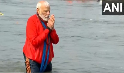 प्रधानमंत्री नरेन्द्र मोदी ने संगम में डुबकी लगाई