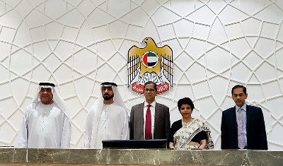 भारतीय मिशन ने ट्वीट किया, ‘‘माननीय न्यायमूर्ति श्रीमती हिमा कोहली और न्यायमूर्ति अब्दुल रहमान अल बालुशी की मौजूदगी में भारतीय प्रवासियों और भारत और यूएई के बीच करीबी न्यायिक सहयोग पर चर्चा की गई। सीजेआई की ऐतिहासिक यात्रा से साझा दुष्टिकोण को मजबूती मिलेगी।’’