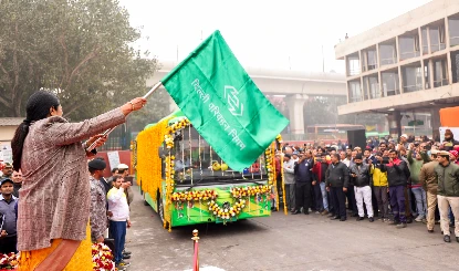 दिल्ली की मुख्यमंत्री रेखा गुप्ता ने गुरुवार को राष्ट्रीय राजधानी के आईएसबीटी (अंतरराज्यीय बस टर्मिनल) से नई इलेक्ट्रिक बसों और एक अंतरराज्यीय बस सेवा को हरी झंडी दिखाकर रवाना किया। दिल्ली-धारूहेरा नामक इस नई अंतरराज्यीय बस सेवा का उद्देश्य दोनों शहरों के बीच संपर्क को मजबूत करना है। इस अवसर पर दिल्ली की मुख्यमंत्री ने इस सेवा को अंतरराज्यीय संपर्क के लिए अत्यंत महत्वपूर्ण बताया। उन्होंने कहा कि प्रदूषण उन्मूलन का सबसे कारगर तरीका इलेक्ट्रिक बसें हैं।