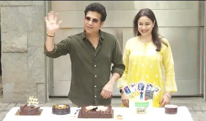 साथ ही केक काटने के बाद सचिन अपने फैंस से मिलने और उनका शुक्रिया कहने को आगे आए और तभी भारत माता की जय का नारे लगने लगे। सचिन गहरे हरे रंग की शर्ट पहने हुए थे और उनकी पत्नी पीले रंग का सूट।