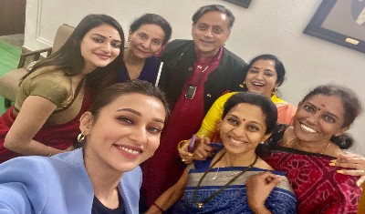 कांग्रेस के वरिष्ठ नेता शशि थरूर ने 6 महिला सांसदों के साथ एक तस्वीर साझा की है। शशि थरूर ने इस फोटो को अपने ट्विटर अकाउंट पर साझा किया है। फोटो संसद के शीतकालीन सत्र के पहले दिन का है। फोटो के साथ शशि थरूर ने लिखा कि कौन कहता है कि लोकसभा काम करने के लिए आकर्षक जगह नहीं है? आज सुबह मेरे छह साथी सांसदों के साथ। शशि थरूर के साथ जिन महिला सांसदों की फोटो है उनमें कांग्रेस की परनीतकौर और जोथिमनी, तृणमूल कांग्रेस की नुसरत जहां और मिमी चक्रवर्ती, एनसीपी की सुप्रिया सुले और डीएमके सांसद थमिज़ाची थंगापांडियन मौजूद हैं।