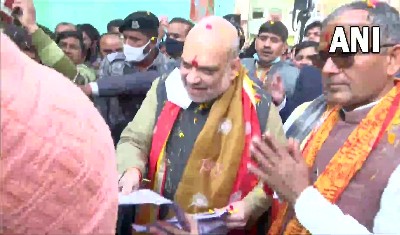 इस दौरान महिलाओं और बच्चियों ने मथुरा की तंग गलियों में स्थित अपने घरों की छत से उन पर पुष्प वर्षा की। इस दौरान शाह एक महिला की गोद में बैठे एक बच्चे को माला पहनाते भी नजर आए।