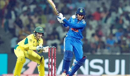 स्मृति मंधाना ने 20वें ओवर में ताहलिया मैकग्राथ की गेंद पर एक रन लेकर अपना अर्धशतक पूरा किया। मैकग्राथ ने अपने अगले ओवर में मंधाना को 58 रन पर आउट कर दिया। उन्होंने अपनी प्रभावशाली पारी में सात चौके लगाए। दीप्ति शर्मा क्रीज पर आईं और जल्द ही सिर्फ दो रन बनाकर पवेलियन लौट गईं। इसके बाद ऋचा घोष कप्तान हरमनप्रीत कौर के साथ शामिल हुईं और दोनों ने छठे विकेट के लिए 37 रन जोड़े।