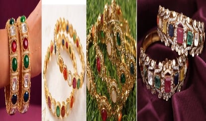 किसी भी फंक्शन के लिए रैडी होने के लिए आउटफिट होना काफी जरुरी है लेकिन लुक को परफेक्ट बनाने के लिए सुंदर एक्सेसरीज होना भी जरुरी होता है। अगर आप भी शादी एवं पार्टी में चार चांद लगाना चाहती हैं, तो आज ही इस तरह के नवरत्न बैंगल्स सेट को खरीद लें। यह आपके हाथों की सुंदरता बढ़ा देंगी। ज्यादातर महिलाओं को चूड़ी पहनने काफी शौक होता है, ऐसे में आप सुंदर कंगन को पहनकर अपने लुक को शानदार बना सकते हैं। इस लेख में हम आपको नवरत्न बैंगल्स का कलेक्शन शेयर करने वाले है, एक बार इनको पहन लिया तो सब लोह आपकी तारीफ करेंगे।