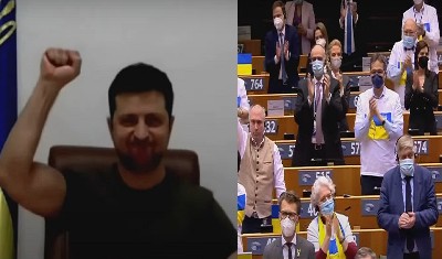 यूक्रेन के राष्ट्रपति वोलोदीमीर जेलेंस्की ने आज यूरोपीय संसद में अपना बयान दिया। जेलेंस्की का ये संबोधन वर्चुअल माध्यम से हुआ। यूक्रेन के राष्ट्रपति वलोडिमिर ज़ेलेंस्की ने यूरोपीय संघ की संसद को संबोधित करते हुए कहा कि रूस का आक्रमण जारी है। हमारे नागरिक अपने जान की कीमत चुका रहे हैं, कल 16 बच्चे मारे गए थे। यूक्रेन के नागरिक स्वतंत्रता की रक्षा कर रहे हैं। मैं इसे सुनकर और इस भावना को महसूस करके खुश हूं। आज यूरोपीय संघ के सभी देश एकीकृत हैं।