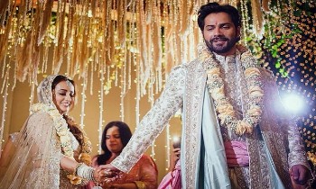 मुंबई। बॉलीवुड अभिनेता वरुण धवन रविवार को अलीबाग के आलीशान रिजॉर्ट द मेन्शन हाउस में निजी समारोह में फैशन डिजाइनर नताशा दलाल के साथ विवाह के बंधन में बंध गए। शादी में उनके परिवार के करीबी मित्रों ने शिरकत की। धवन (33) ने अपने इंस्टाग्राम अकाउंट पर शादी की तस्वीरें डालीं।