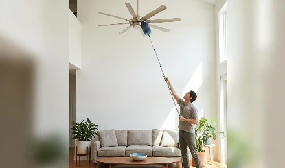 छत के पंखे की सफाई बिना स्टूल या सीढ़ी पर चढ़े भी आसानी से की जा सकती है। इसके लिए एक पुराना पोछा लें जिसकी डंडी लंबी हो। सबसे पहले पोछे के धागों वाले हिस्से को दो समान भागों में अलग कर लें, ताकि पंखे की पंखुड़ियों को अच्छी तरह पकड़कर साफ किया जा सके। यह उपाय बेहद सरल और सुरक्षित है, खासकर उन घरों के लिए जहां सीढ़ी की सुविधा मौजूद नहीं होती।