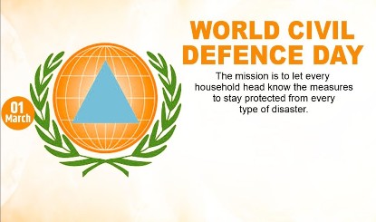 वर्ल्ड सिविल डिफेंस डे पूरी दुनिया में आज यानी 1 मार्च को मनाया जाता है। उन लोगों को सम्मान देने के लिए यह दिन मनाया जाता है जो नागरिकों की सुरक्षा के लिए काम करते हैं। इस दिन लोगों को सुरक्षा सावधानियों के बारे में जानने के लिए प्रोत्साहित किया जाता है। इस दिन लोगों को सुरक्षा के तरीके बताए जाते हैं ताकि किसी भी इमरजेंसी सिचुएशन चाहे वो नेचुरल हो या मानव वारा निर्मित, उसके आने पर वह उनके उनके लिए तैयार रहें।