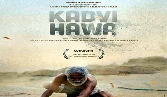 सामाजिक मुद्दे पर बनी हिंदी फीचर फिल्म ‘कड़वी हवा’ (डार्क विंड) की स्पेशल स्क्रीनिंग आज एसएम सहगल फाउंडेशन, गुरुग्राम के आडिटोरियम में की जा रही है जिसमें कृषि जगत एवं पर्यावरणविदों के अलावा सामाजिक कार्यों में लगे विशेष आमंत्रित सदस्य तथा किसानों के प्रतिनिधि भाग ले रहे हैं। पद्मश्री से सम्मानित फिल्म निर्देशक नील माधब पांडा फिल्म के विभिन्न पहलुओं पर उपस्थित विशेष आमंत्रित सदस्यों से चर्चा करने के लिए मौजूद रहेंगे। इस बार के 64वें नेशनल अवार्ड में सामाजिक मुद्दों पर फिल्में बनाने वाले फिल्म निर्देशक नील माधब पांडा की ताजा फिल्म ‘कड़वी हवा’ का विशेष तौर पर जिक्र (स्पेशल मेंशन) किया गया है। स्पेशल मेंशन में फिल्म की सराहना की जाती है और एक सर्टिफिकेट दिया जाता है। बॉलीवुड से गायब होते सामाजिक मुद्दों के बीच सूखाग्रस्त किसानों की समस्याएं और घटते-बढ़ते जलस्तर पर बनी कड़वी हवा की सराहना और सर्टिफिकेट मिलना राहत देने वाली बात है।