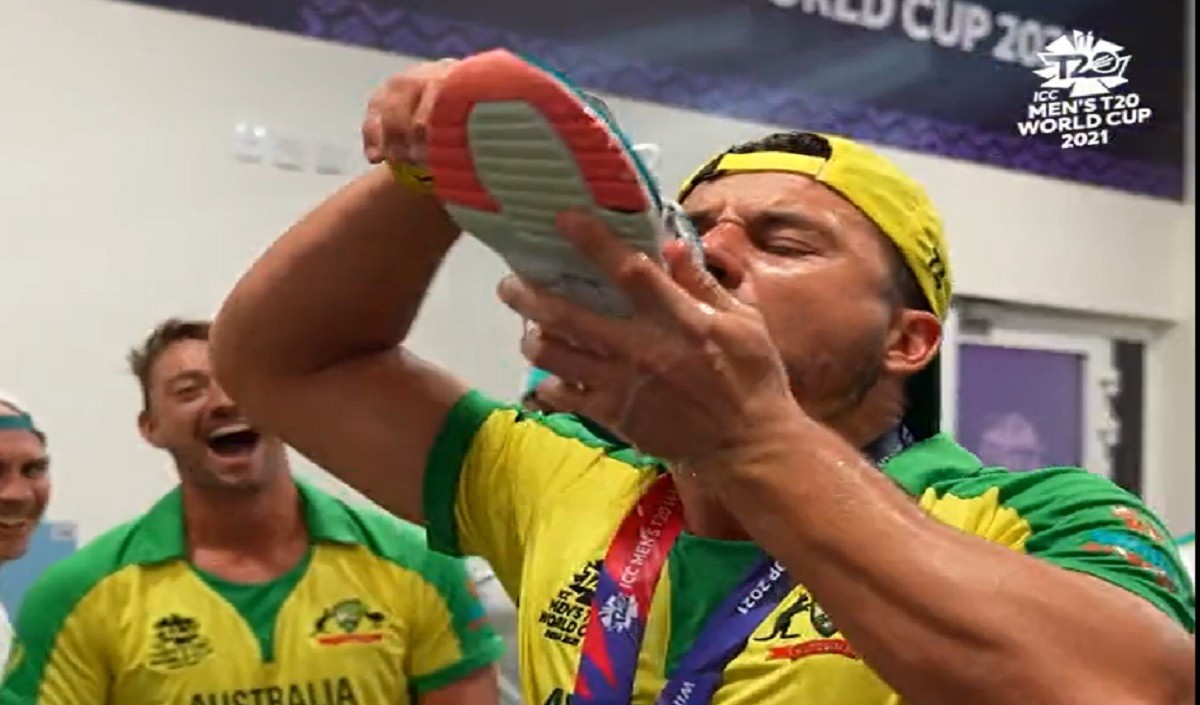 जूते में बीयर डालकर पी रहे हैं मैथ्यू वेड और मार्कस स्टोइनिस, देखें ऑस्ट्रेलियाई टीम का अनोखा जश्न