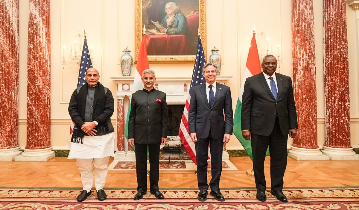 भारत और अमेरिका के बीच चौथी टू प्लस टू वार्ता हुई, जिसमें दोनों पक्षों ने युद्धग्रस्त यूक्रेन समेत मौजूदा घटनाक्रमों पर चर्चा की और हिंद-प्रशांत क्षेत्र में चीन की बढ़ती सैन्य गतिविधियों के बीच इस क्षेत्र में अपने सहयोग की समीक्षा की। टू प्लस टू वार्ता में विदेश मंत्री एंटनी ब्लिंकन और रक्षा मंत्री लॉयड ऑस्टिन और उनके भारतीय समकक्षों एस जयशंकर और राजनाथ सिंह ने भाग लिया।