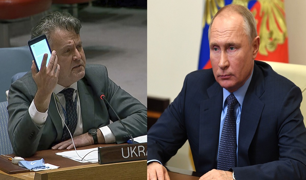 यूक्रेन के राजदूत सर्गीय किस्लित्स्या ने संयुक्त राष्ट्र में इस युद्ध की तुलना दूसरे विश्व युद्ध से करते हुए पुतिन को जर्मनी के तानाशाह एडोल्फ हिटलर सरीखा बताया है। उन्होंने कहा कि दूसरे विश्व युद्ध की तरह ही आज की वैश्विक सुरक्षा खतरे में है।