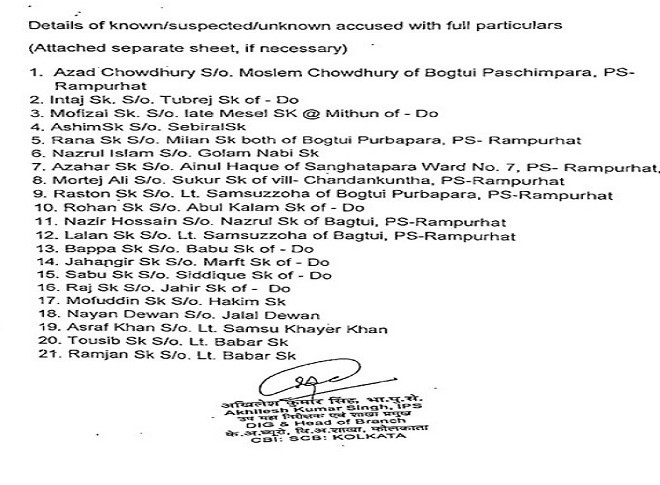 केंद्रीय जांच ब्यूरो ने बीरभूम मामले में 21 संदिग्धों को नामजद किया