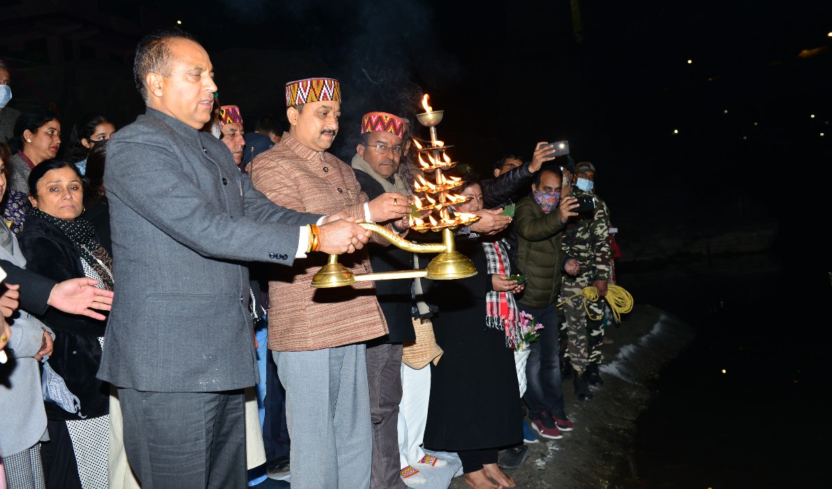 मुख्यमंत्री जय राम ठाकुर ने मण्डी मंे आयोजित ब्यास आरती मंे भाग लिया